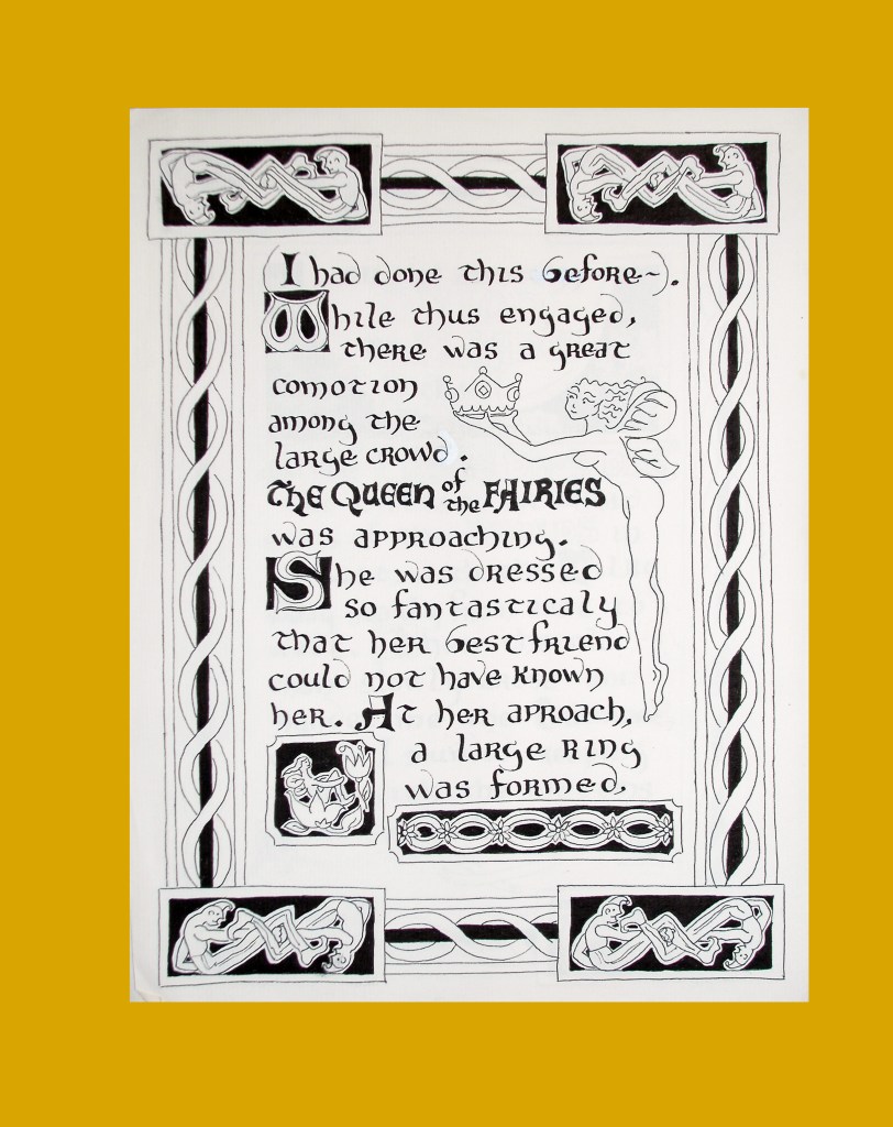 John Hugh Roberts wrote a story on the Galecerth of Halloween. This has been illuminated and make into a picture style book. Leo De Pasqua an amazing artists did detailed drawings around the writings of the story. We will write the beginning and show a few of the pages. It is available on Amazon and you can see the link below: